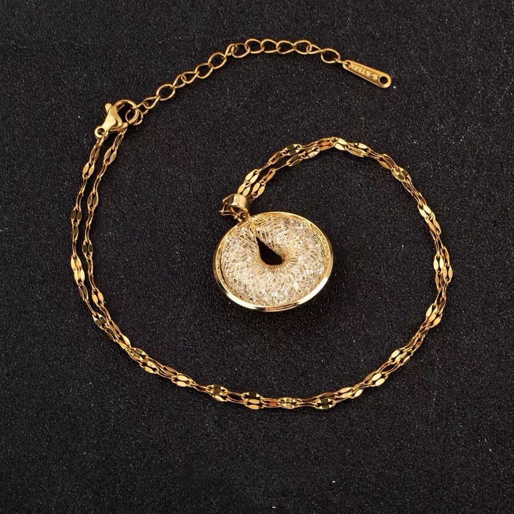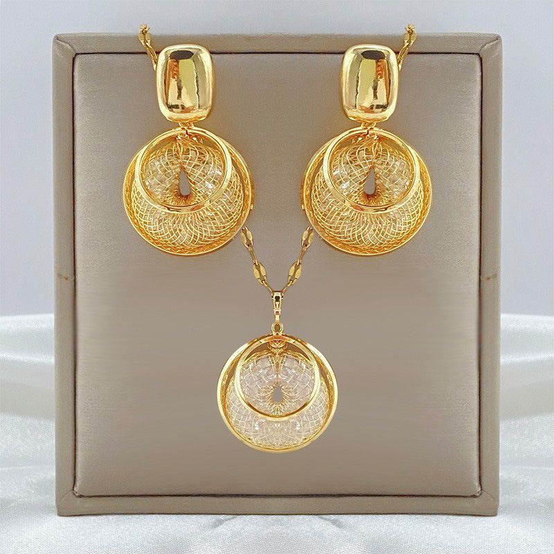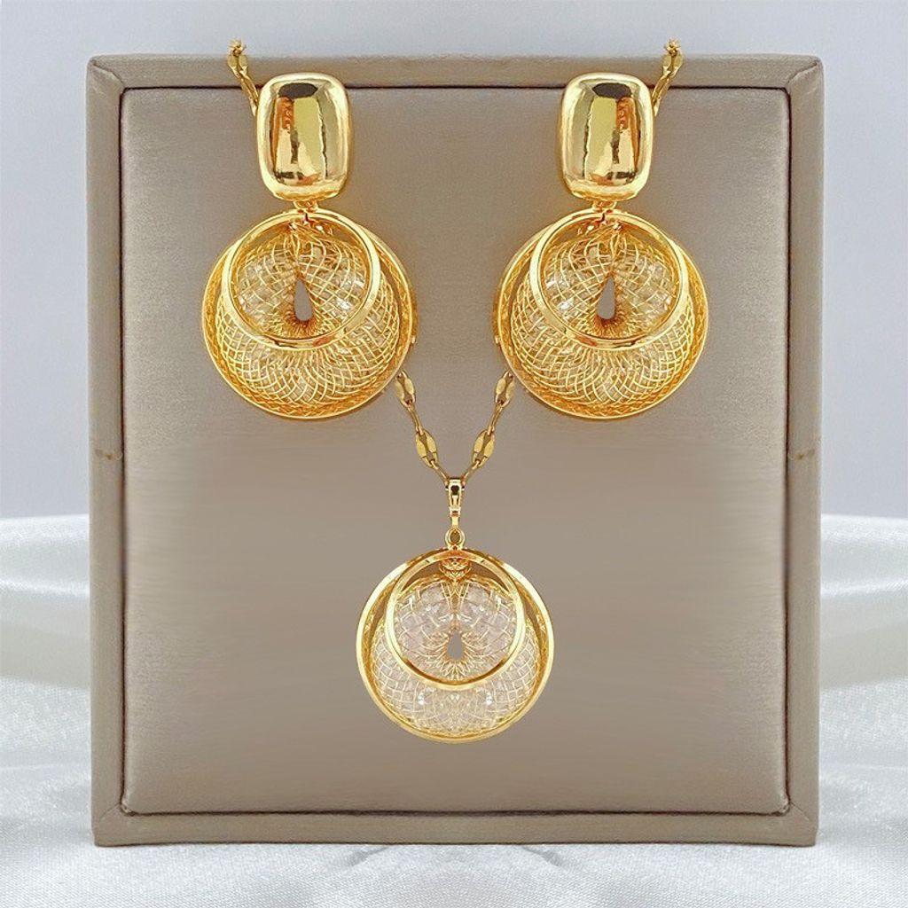 High Fashion Gold Mesh Pendant Necklace + Earrings Jewelry Set